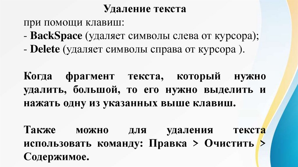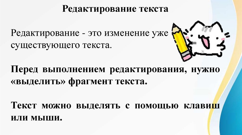 Редактирование текстаРедактирование - это изменение уже