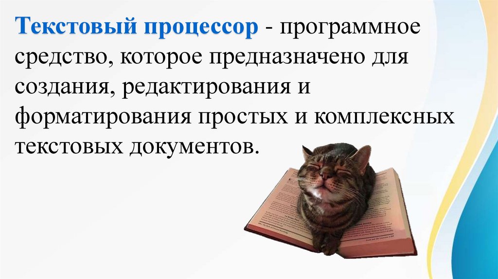 Текстовый процессор - программноесредство, которое предназначено для