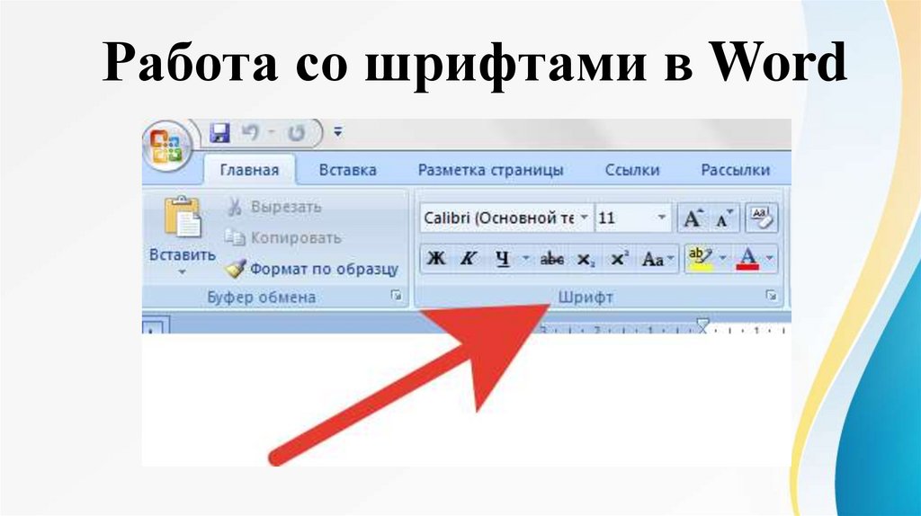 чем в группе Шрифт ленты