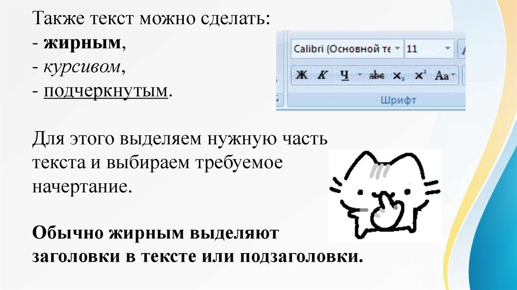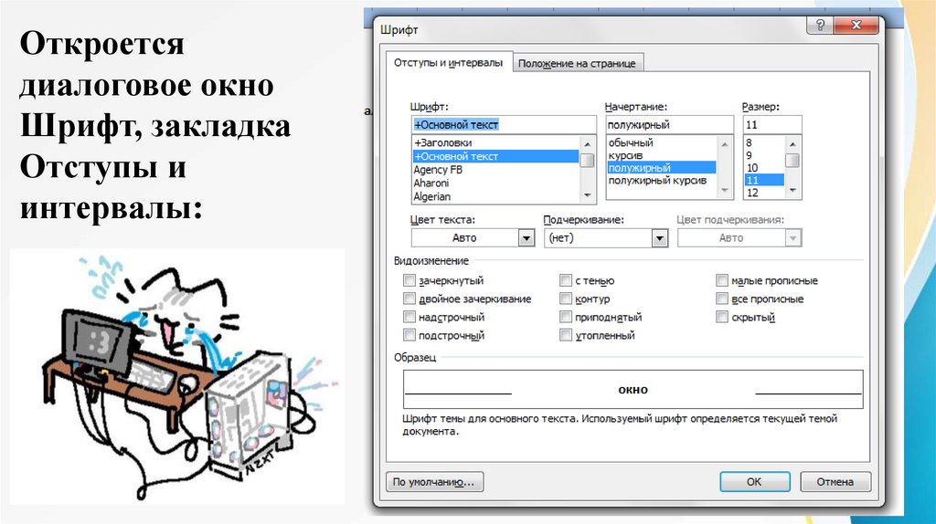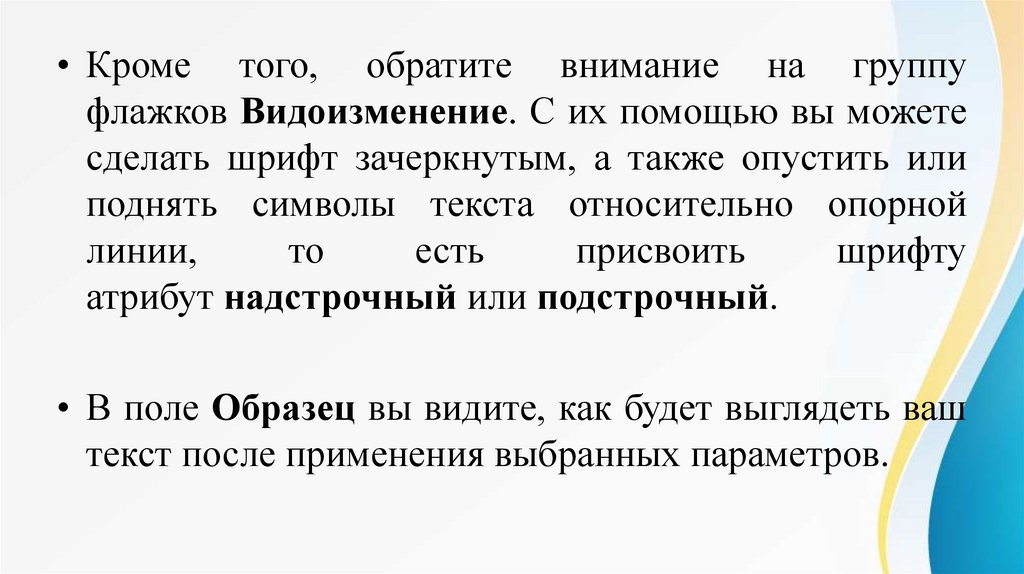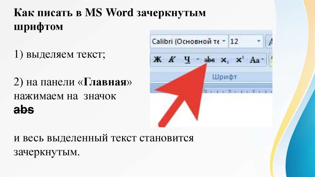 сделать шрифт зачеркнутым, а также опустить или