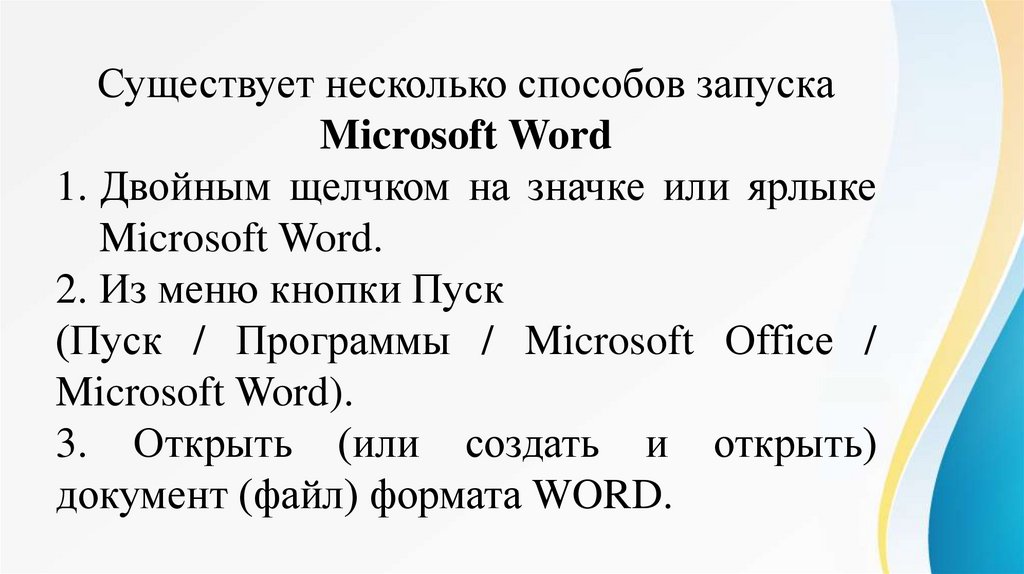 Существует несколько способов запускаMicrosoft Word