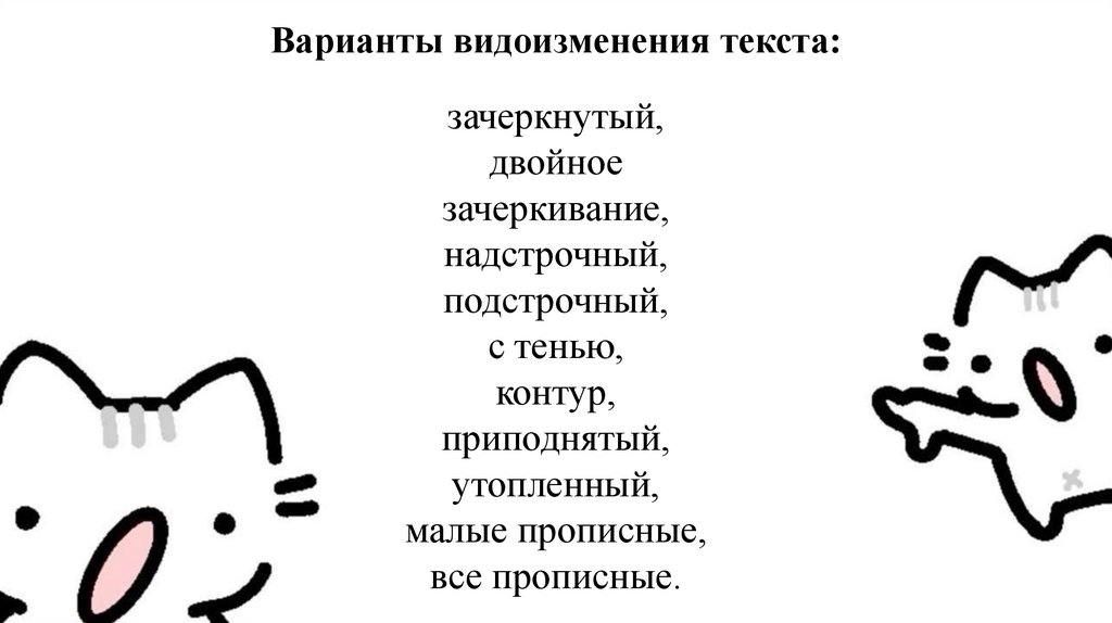 Варианты видоизменения текста:зачеркнутый,