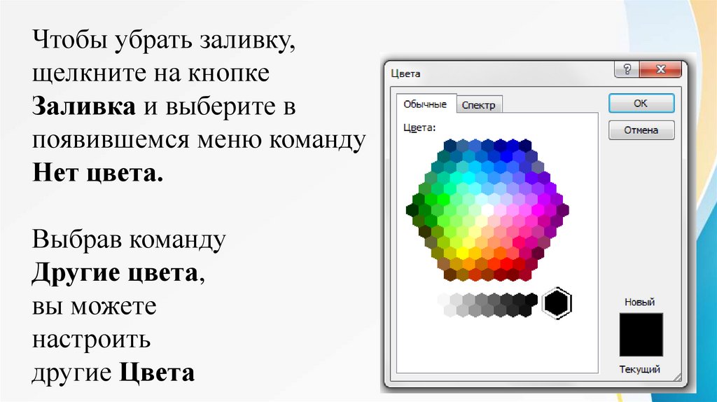 Чтобы убрать заливку,щелкните на кнопке
