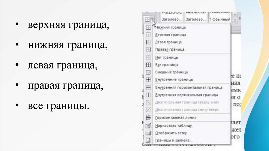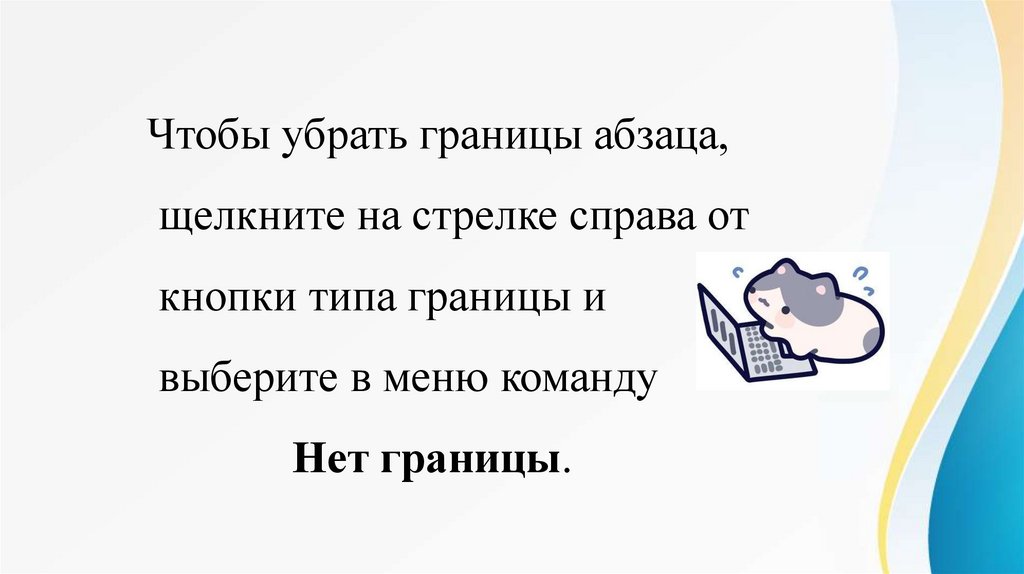 Чтобы убрать границы абзаца,щелкните на стрелке справа от