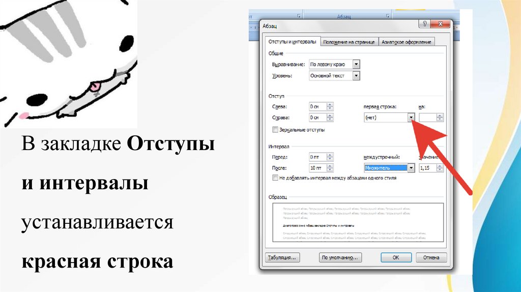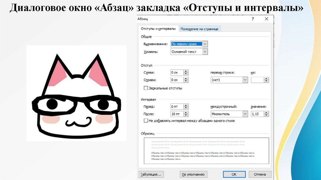 • вызовите окно «Абзац».