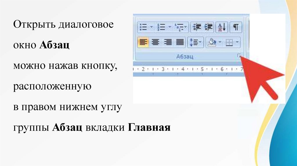 Открыть диалоговоеокно Абзац