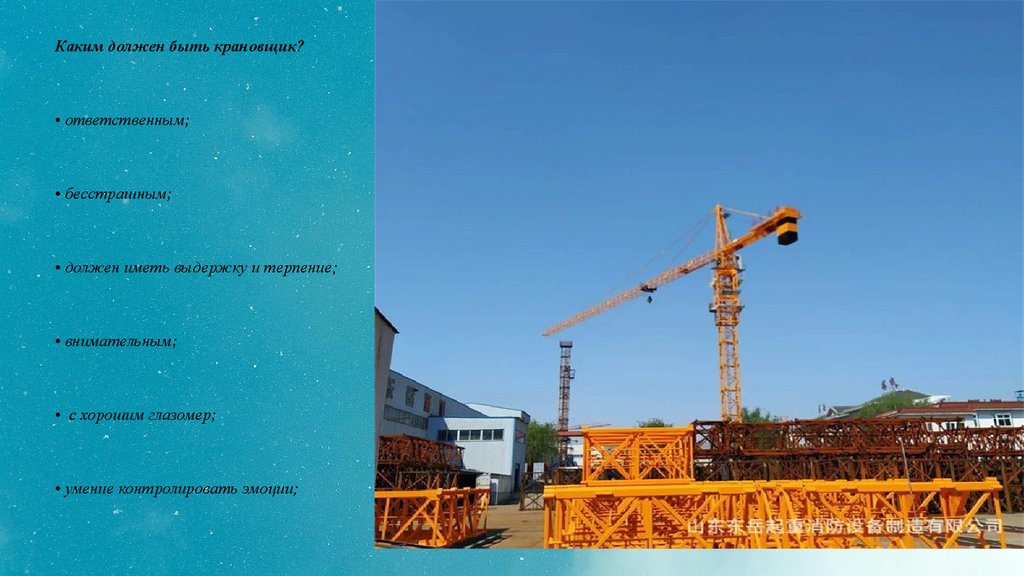 Каким должен быть крановщик?• ответственным;