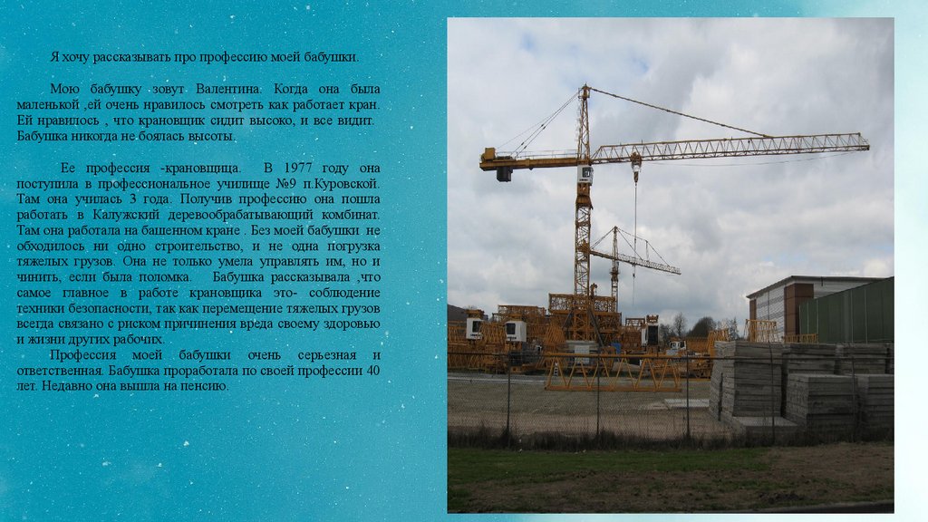 Там она работала на башенном кране . Без моей бабушки не