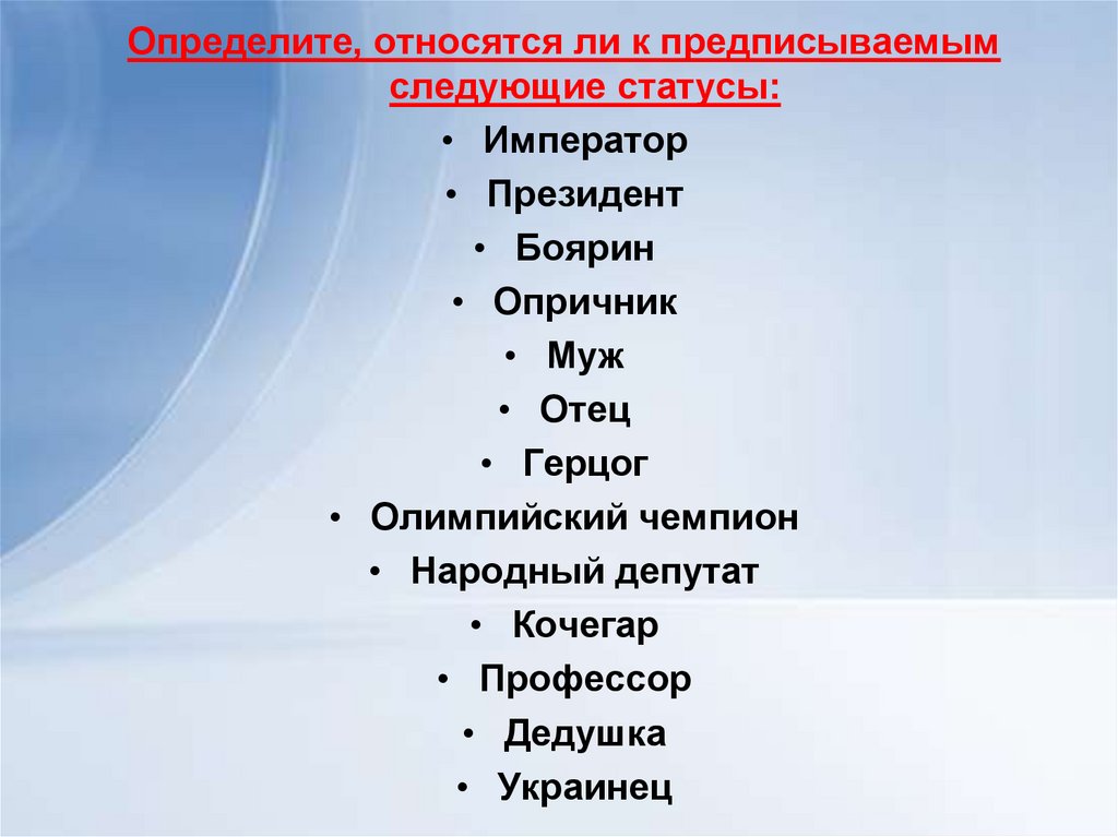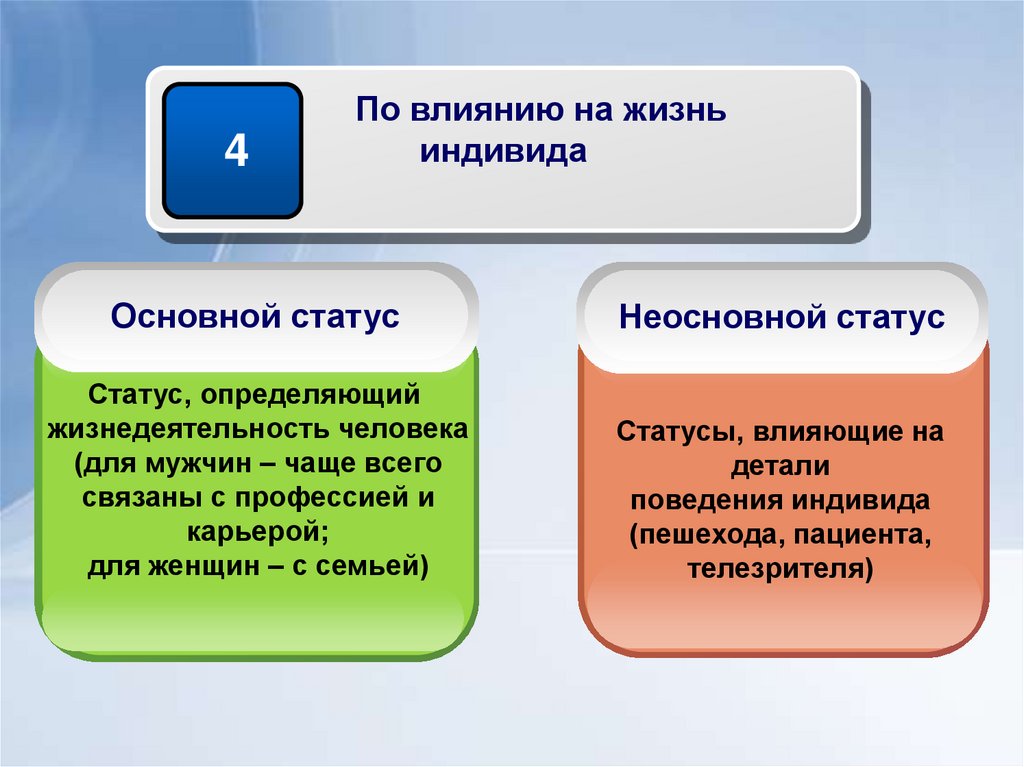 3. В статусе фиксируется тот набор конкретных действий, социальных манипуляций, которые должны быть ему представлены для