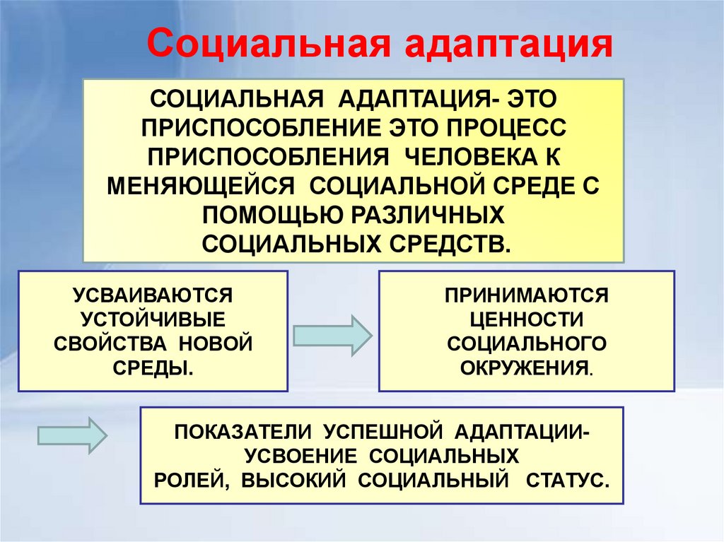 Социальная адаптацияСОЦИАЛЬНАЯ АДАПТАЦИЯ- ЭТО