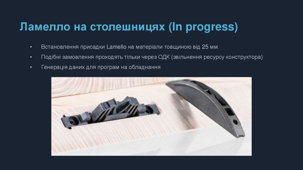 Встановлення присадки Lamello на матеріали товщиною від 25 мм.