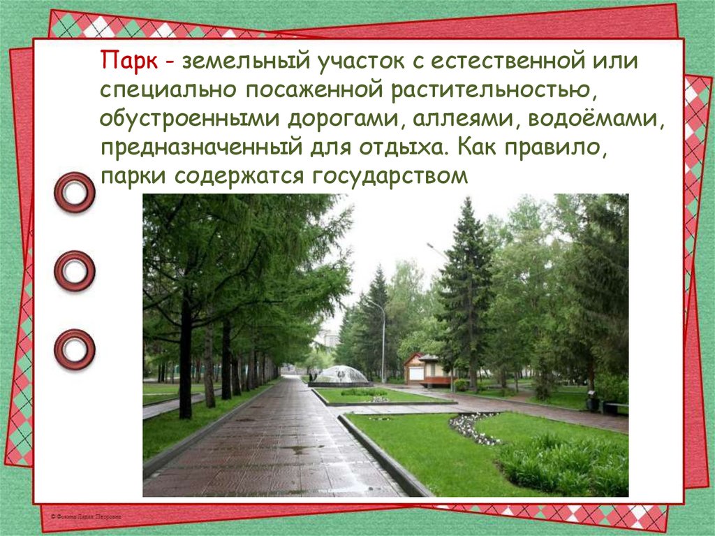 Парк - земельный участок с естественной илиспециально посаженной растительностью,