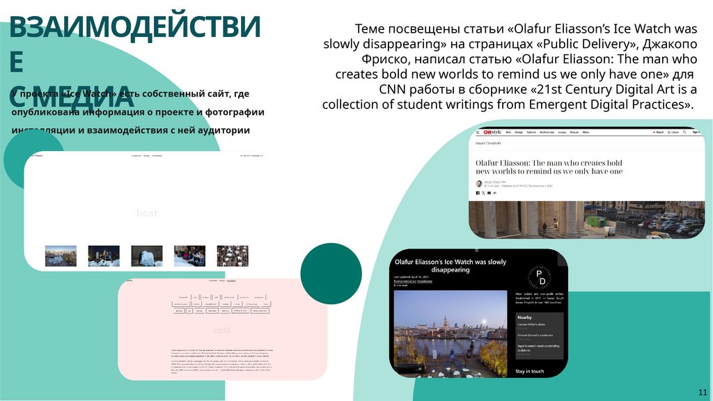 Теме посвещены статьи «Olafur Eliasson’s Ice Watch was