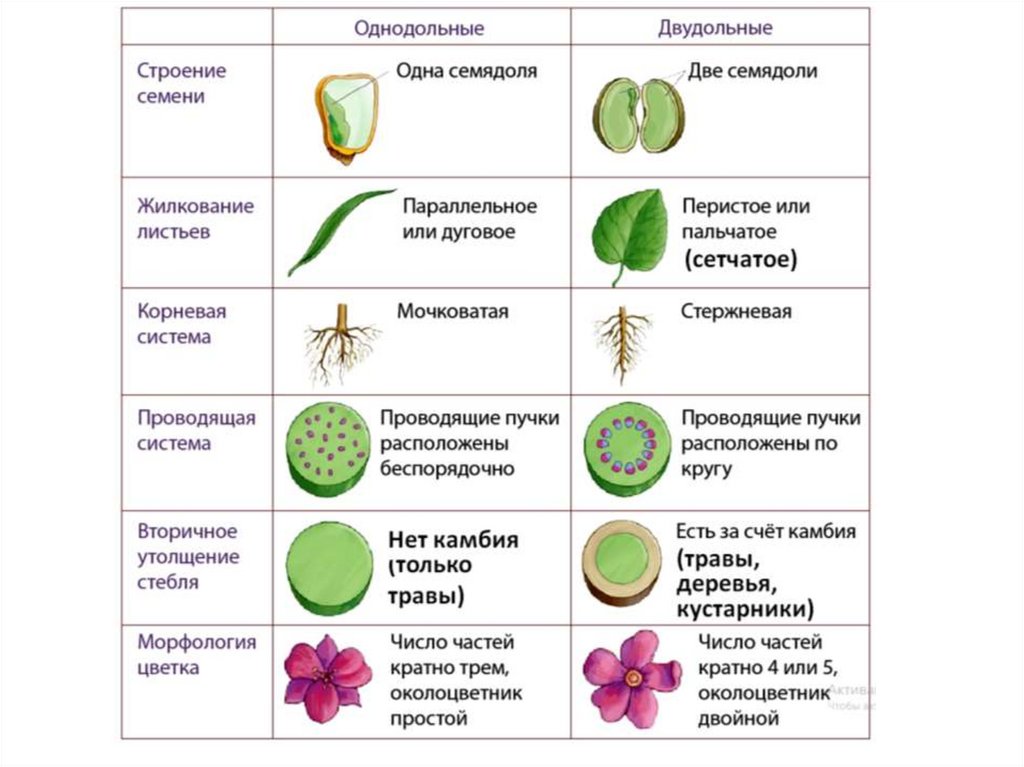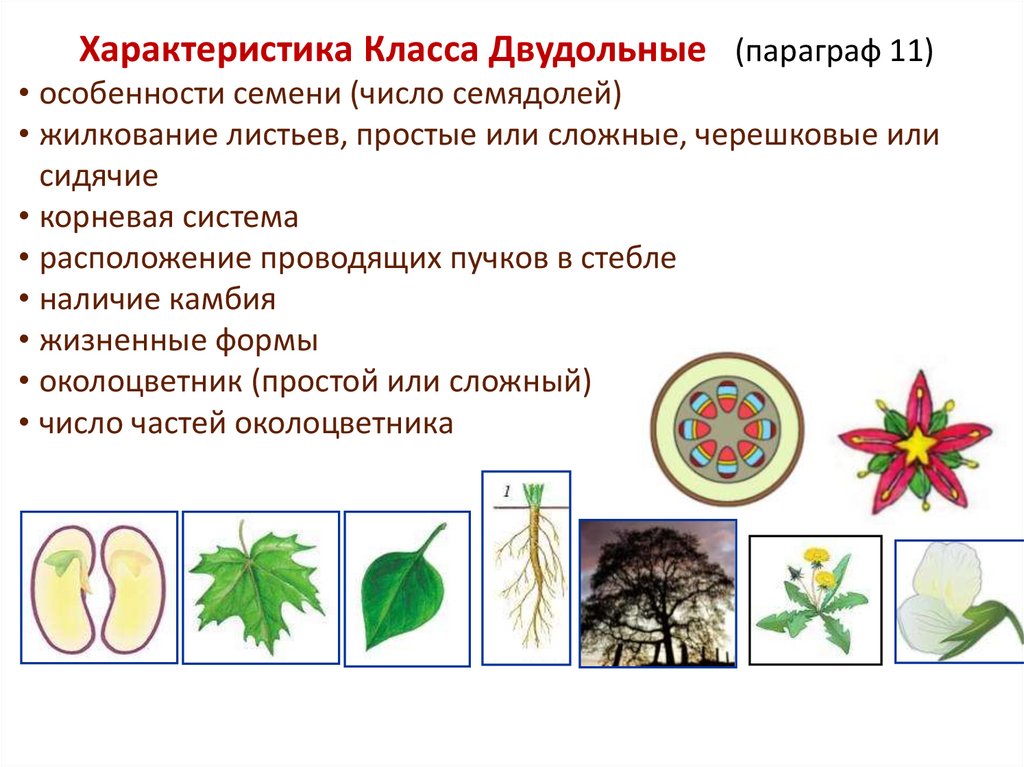 Характеристика Класса Двудольные (параграф 11)• особенности семени (число семядолей)