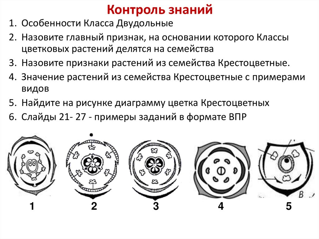 Контроль знаний1. Особенности Класса Двудольные