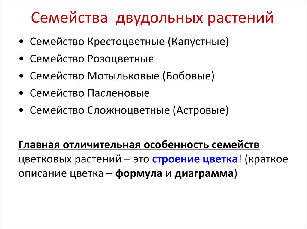 цветковых растений делятся на семейства