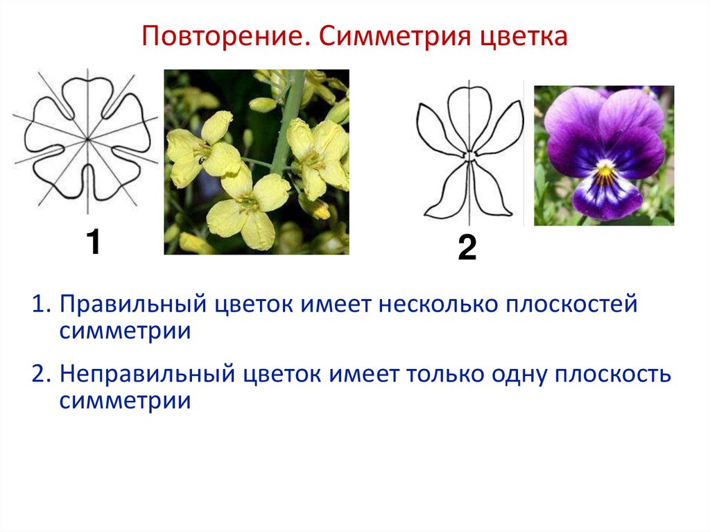 1. Правильный цветок имеет несколько плоскостей