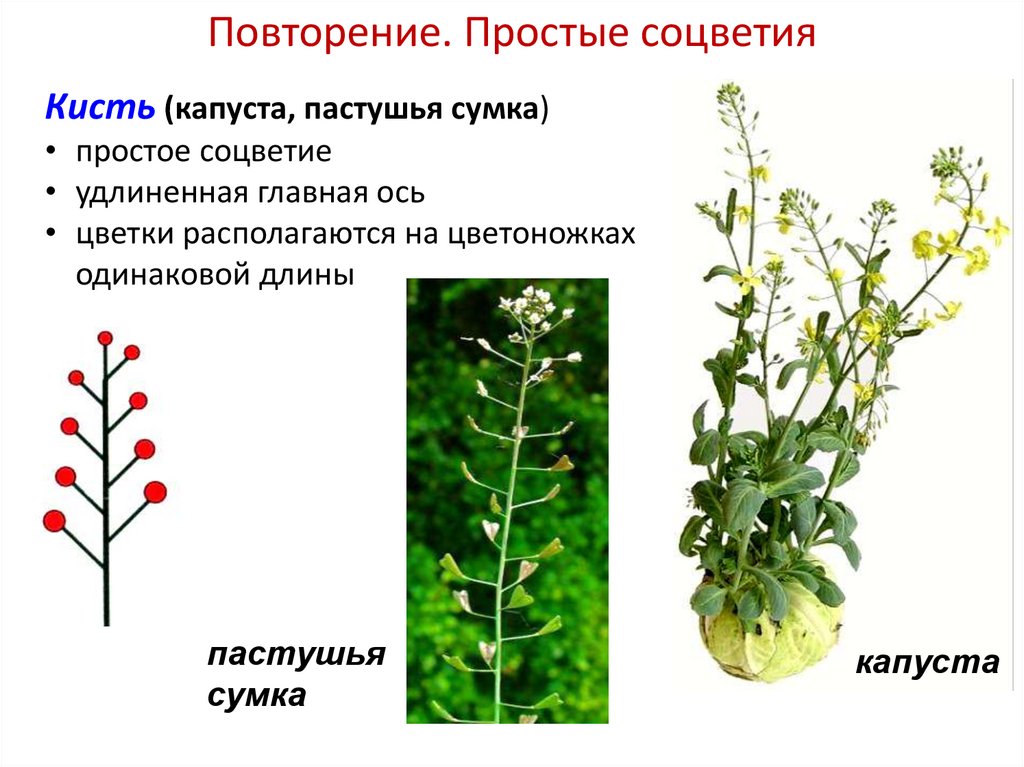 Повторение. Простые соцветияКисть (капуста, пастушья сумка)