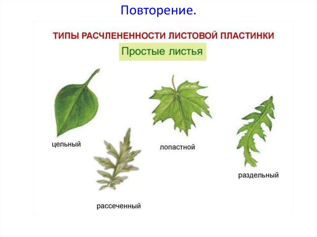 • жилкование листьев, простые или сложные, черешковые или