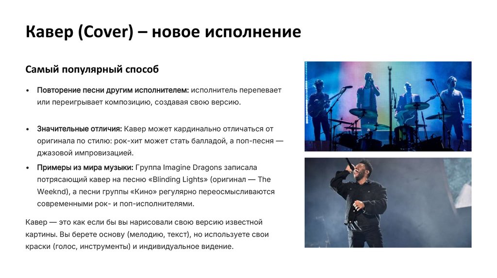 или переигрывает композицию, создавая свою версию.