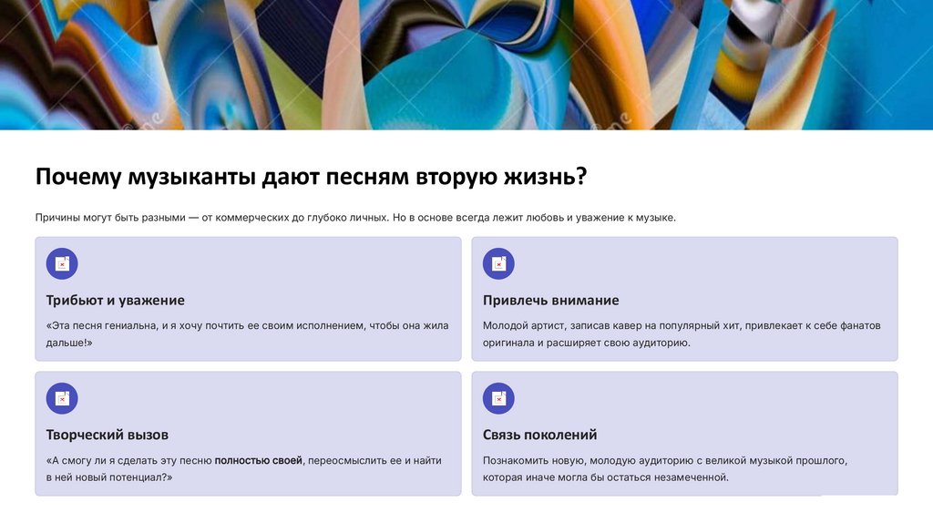 Почему музыканты дают песням вторую жизнь?Причины могут быть разными — от коммерческих до глубоко личных. Но в основе всегда лежит любовь и уважение к музыке.