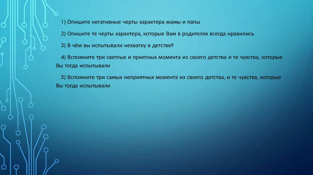 5) Вспомните три самых неприятных момента из своего детства, и те чувства, которые