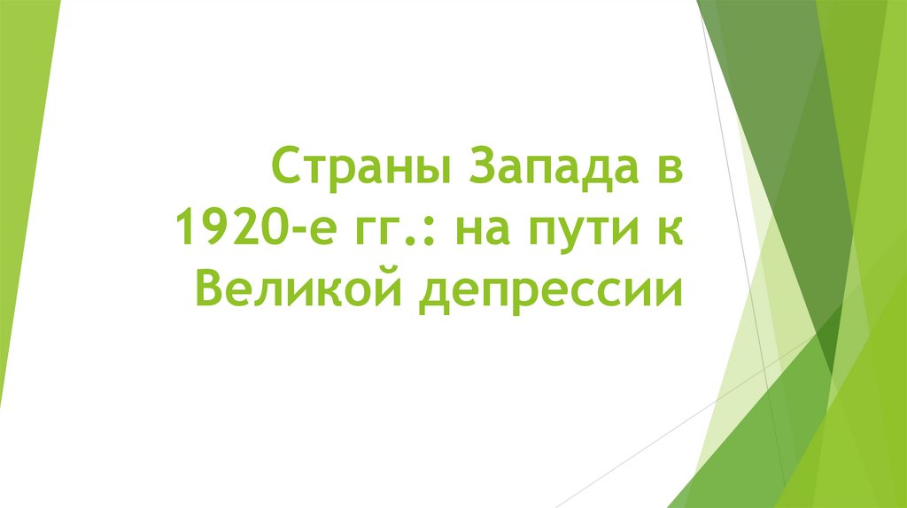 1. Страны Запада в 1920-е гг.: на пути к Великой депрессии