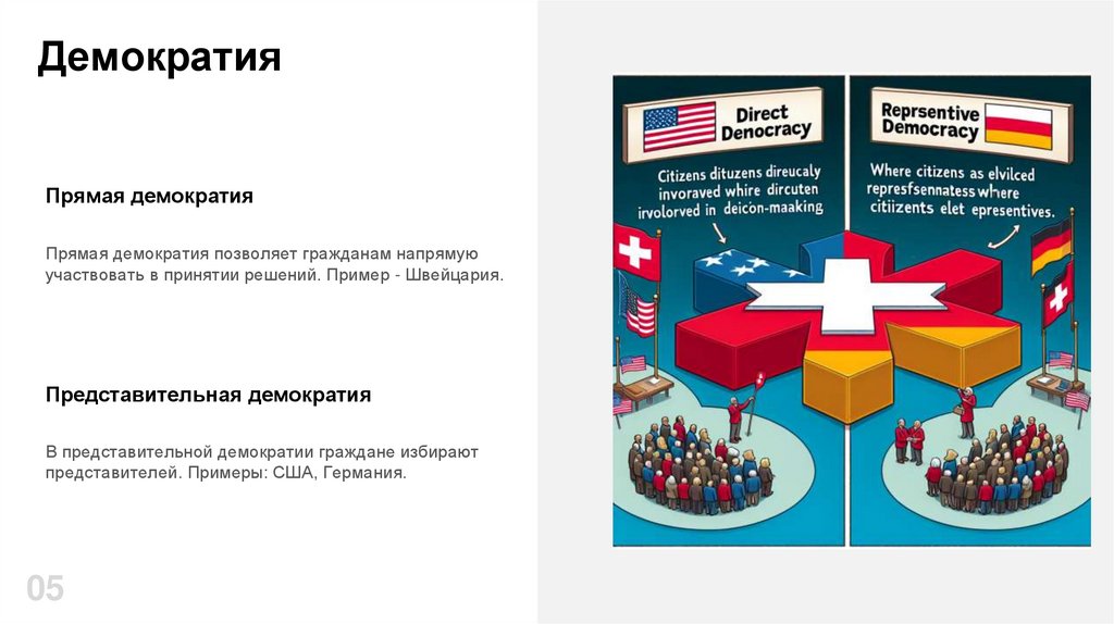 участвовать в принятии решений. Пример - Швейцария.