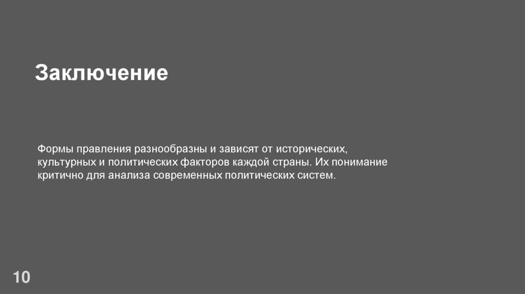 ЗаключениеФормы правления разнообразны и зависят от исторических,