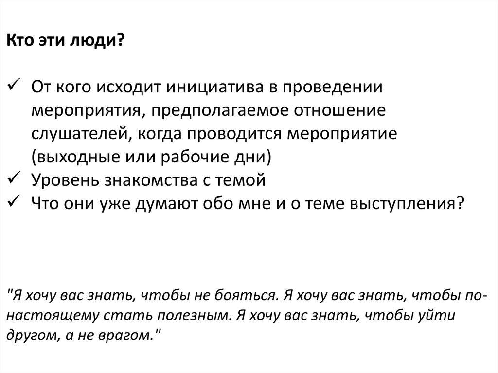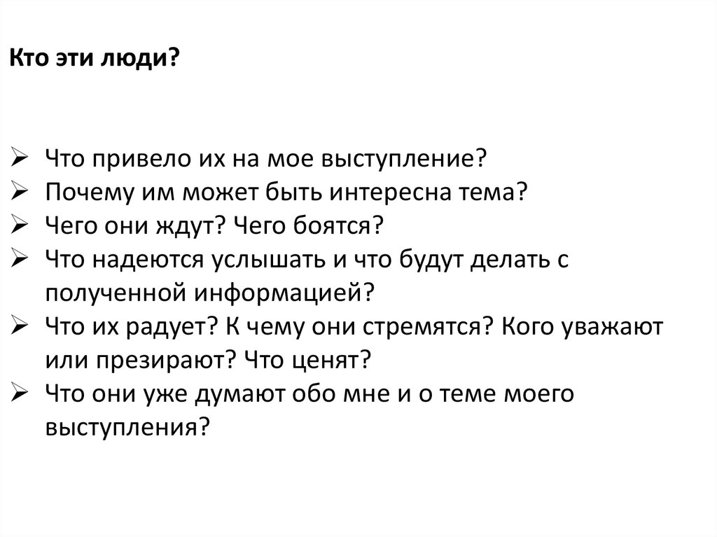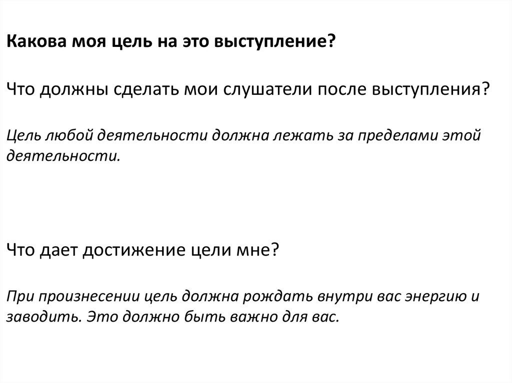 Какова моя цель на это выступление?Что должны сделать мои слушатели после выступления?