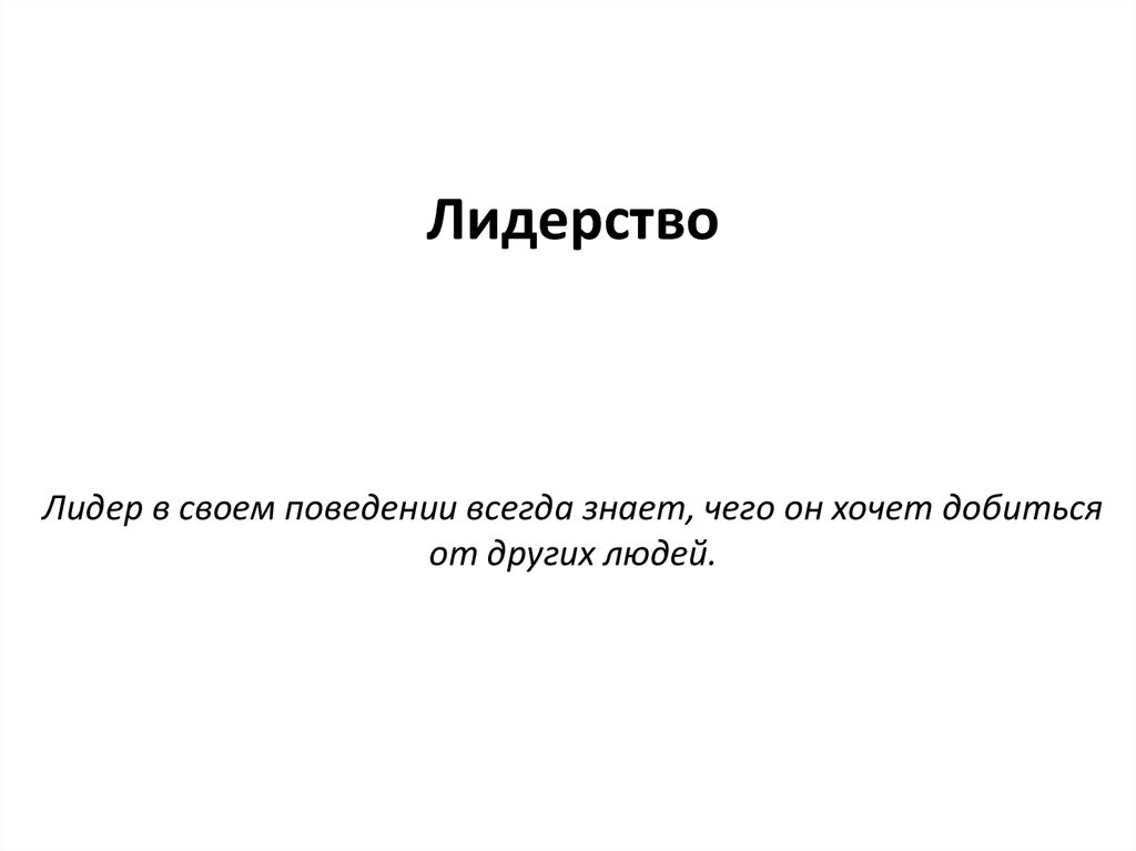 ЛидерствоЛидер в своем поведении всегда знает, чего он хочет добиться