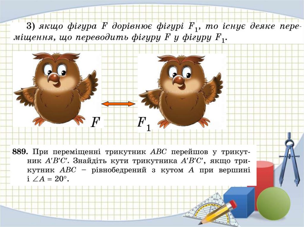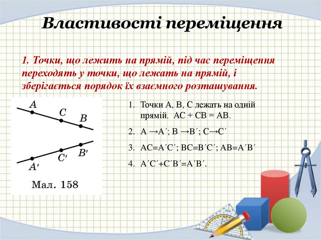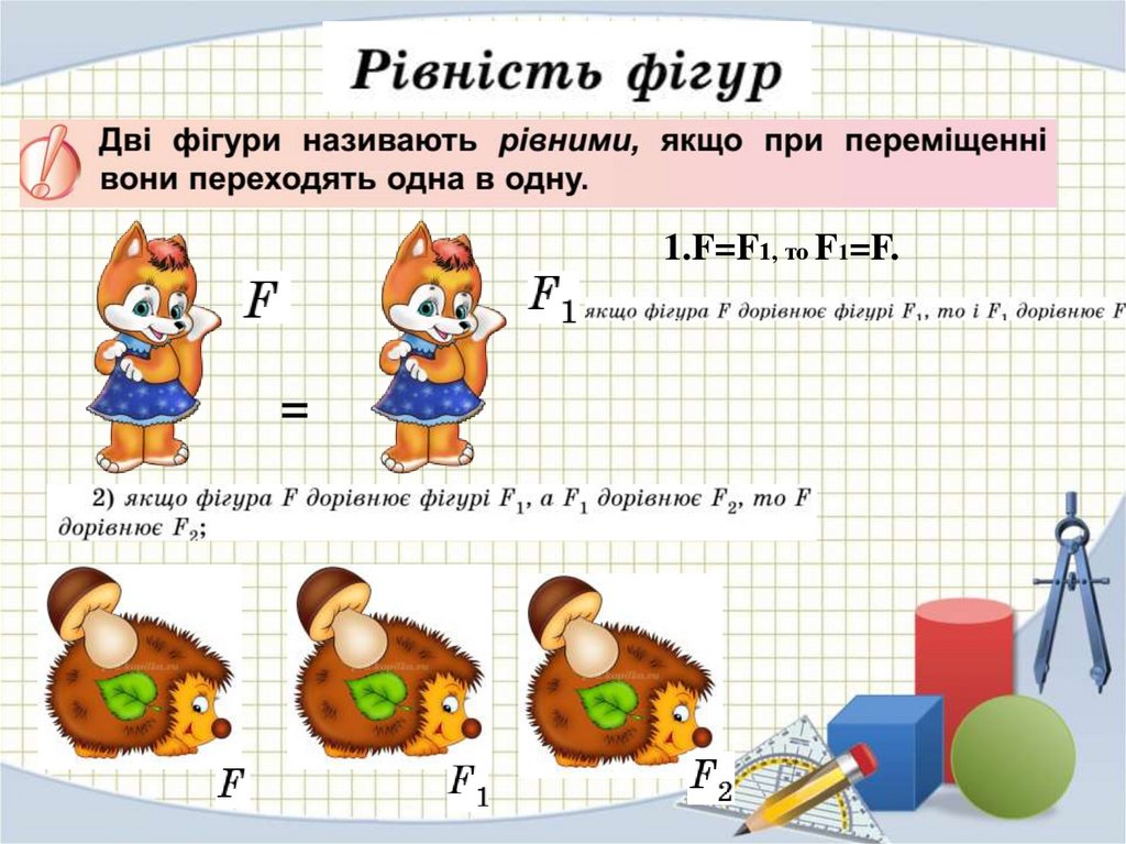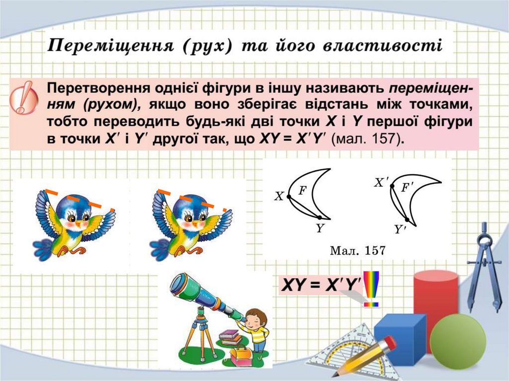 1. ПЕРЕМІЩЕННЯ (РУХ) ТА ЙОГО ВЛАСТИВОСТІ. РІВНІСТЬ ФІГУР.