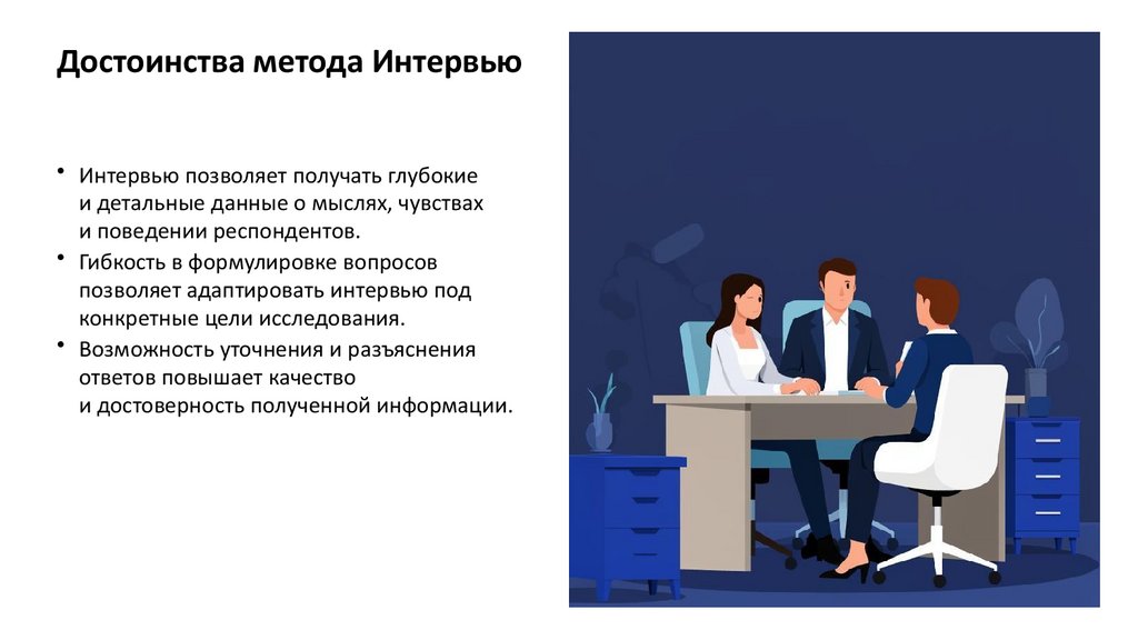 Достоинства метода Интервью• Интервью позволяет получать глубокие