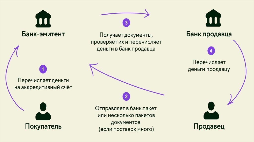 В чём суть. Покупатель заранее перечисляет полную сумму аккредитива на специальный счёт в банке. Банк