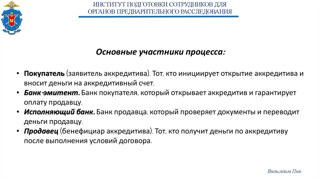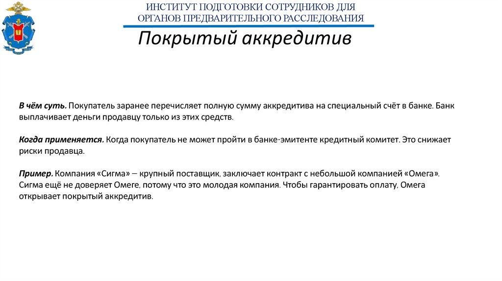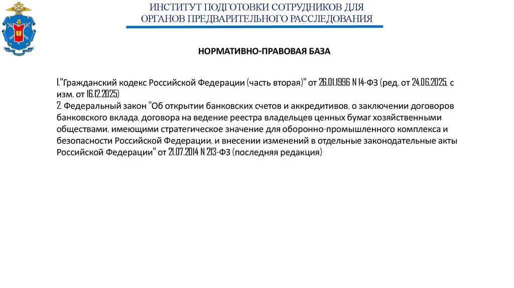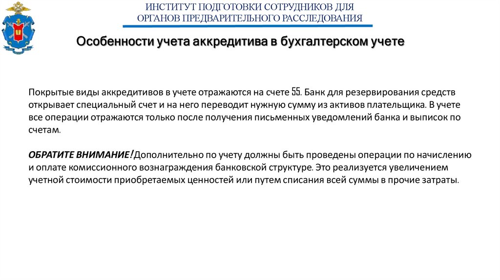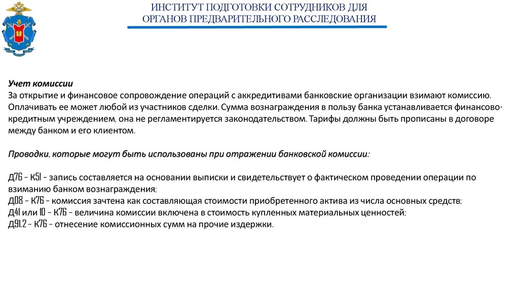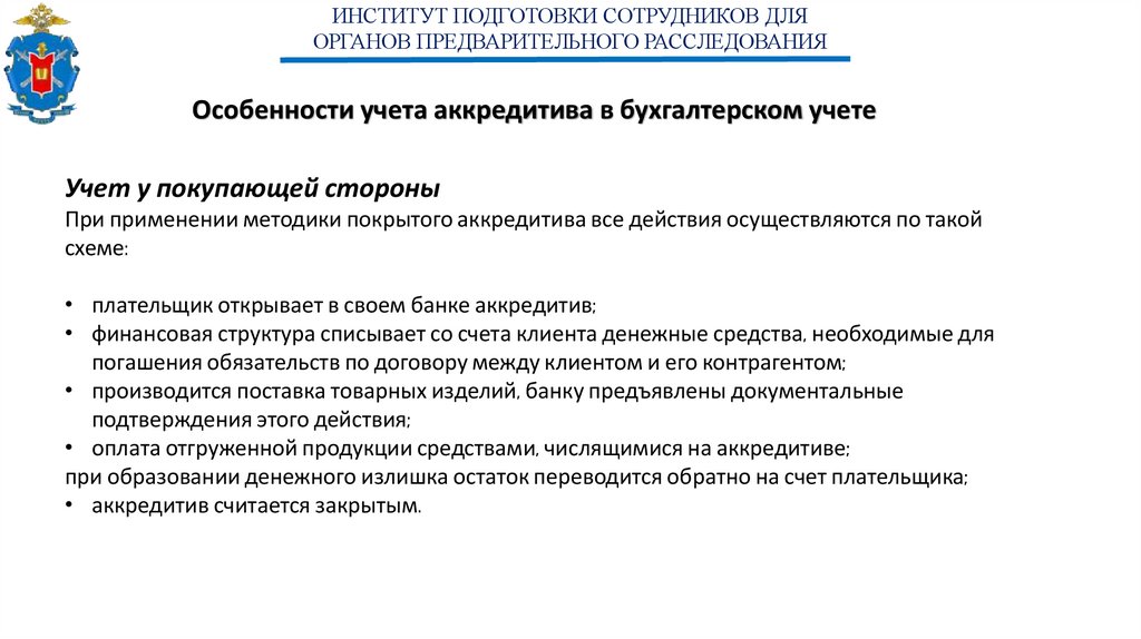 ИНСТИТУТ ПОДГОТОВКИ СОТРУДНИКОВ ДЛЯОРГАНОВ ПРЕДВАРИТЕЛЬНОГО РАССЛЕДОВАНИЯ