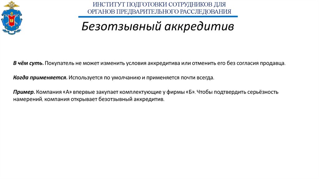 намерений, компания открывает безотзывный аккредитив.
