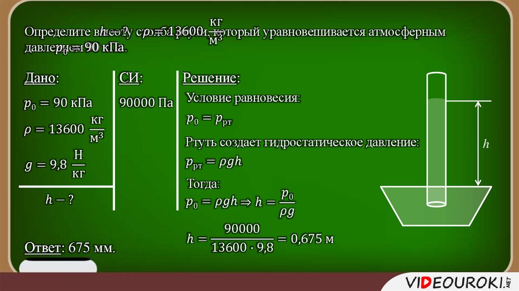 столба ртути в трубке: