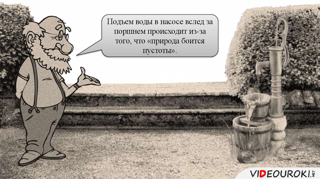 Подъем воды в насосе вслед запоршнем происходит из-за