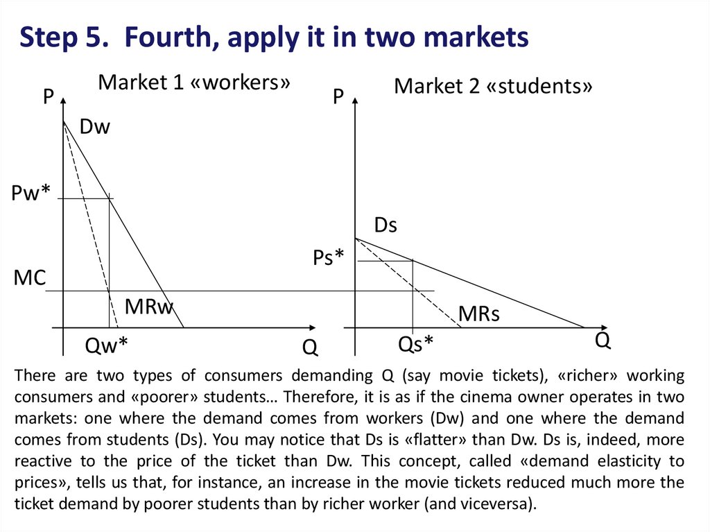 Step 5. Third, apply it in two marketsThis enables the cinema owner to charge differentiated prices to students and workers. But