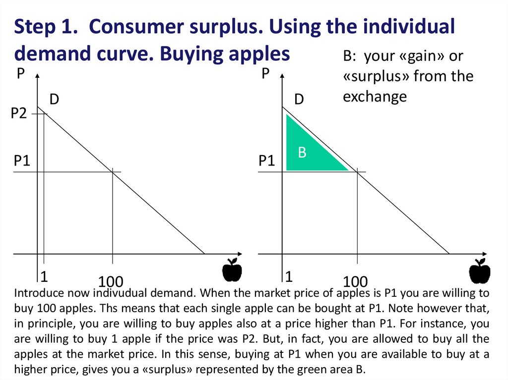 Step 1. Consumer surplus. Using the individualdemand curve. Buying apples