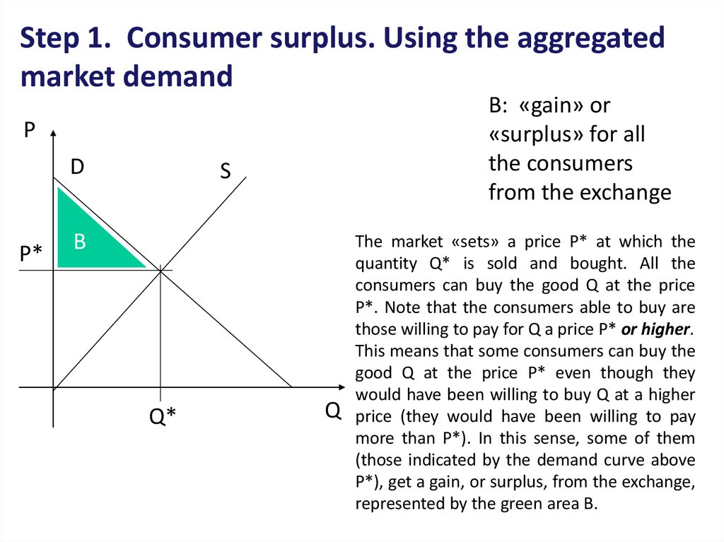 Step 1. Consumer surplus. Using the aggregatedmarket demand