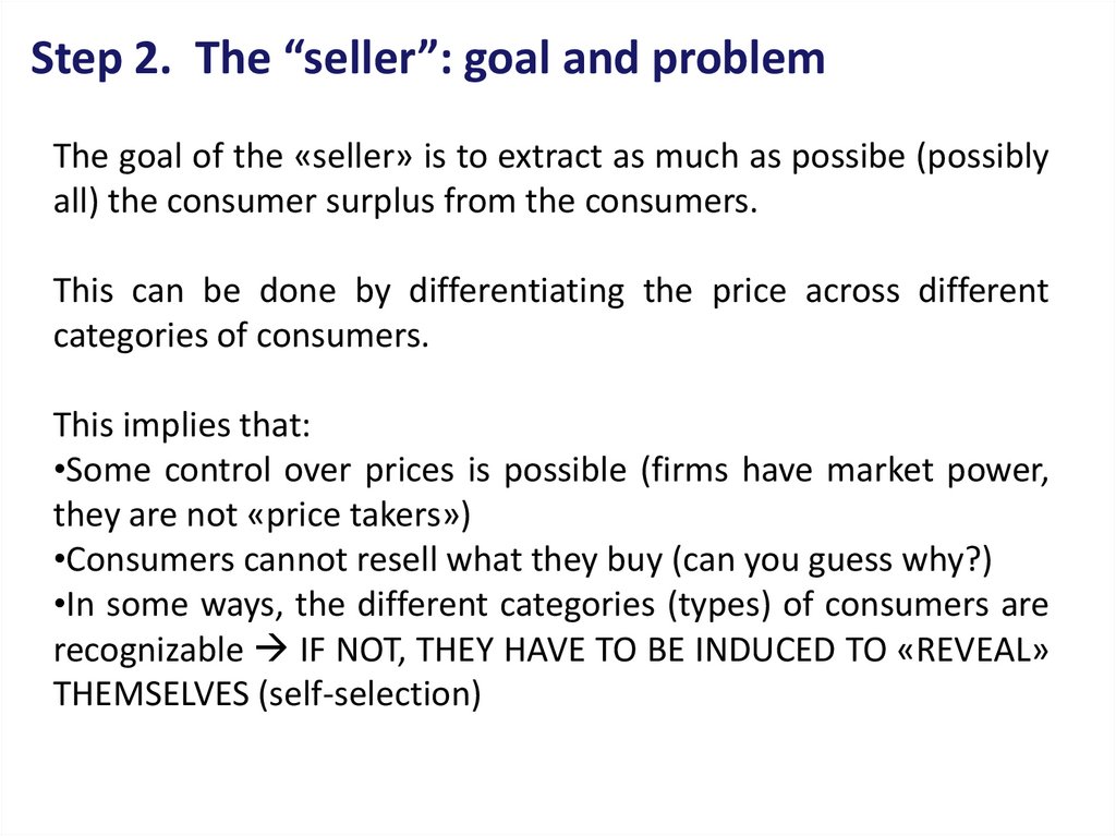 Step 2. The “seller”: goal and problemThe goal of the «seller» is to extract as much as possibe (possibly