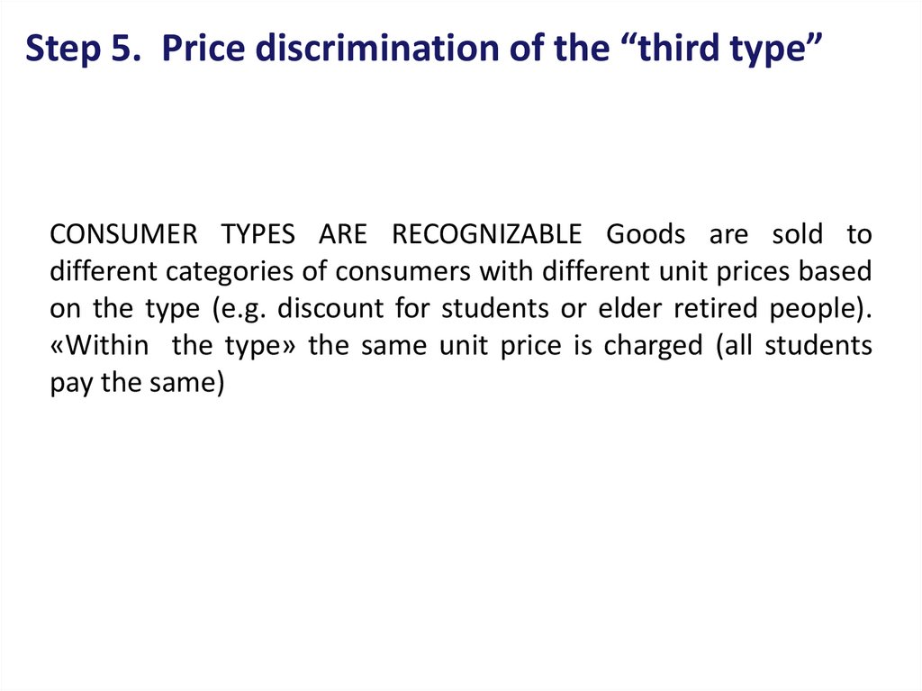 Step 5. Price discrimination of the “third type”CONSUMER TYPES ARE RECOGNIZABLE Goods are sold to