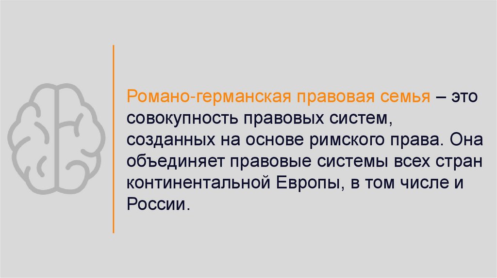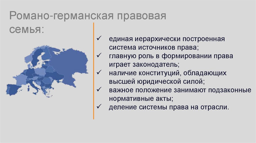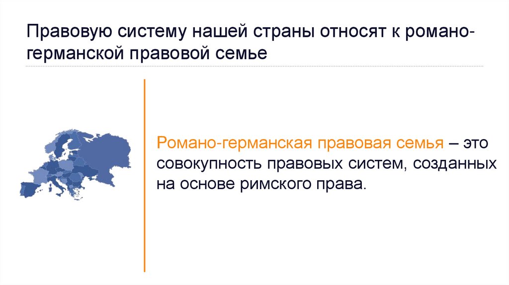 Правовую систему нашей страны относят к романогерманской правовой семьеРомано-германская правовая семья – это