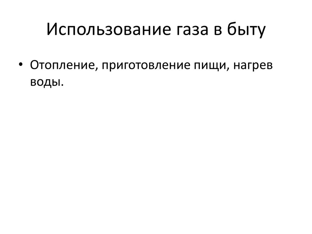 Использование газа в быту• Отопление, приготовление пищи, нагрев