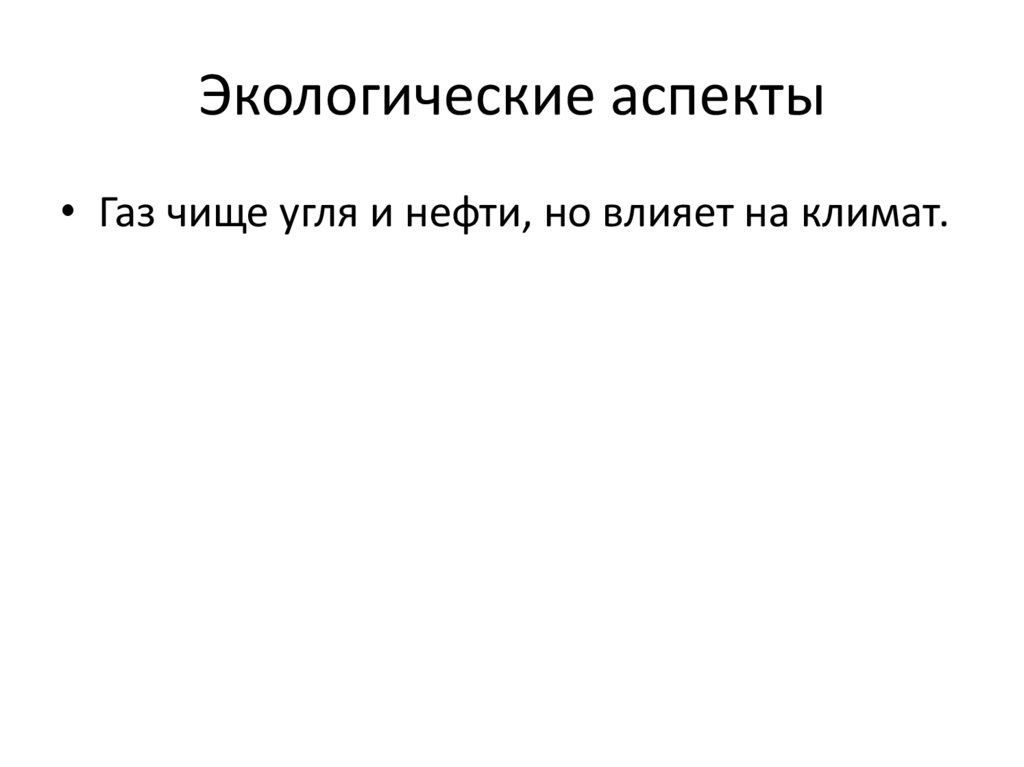 Экологические аспекты• Газ чище угля и нефти, но влияет на климат.