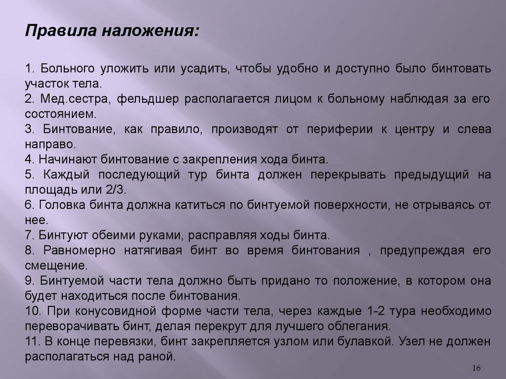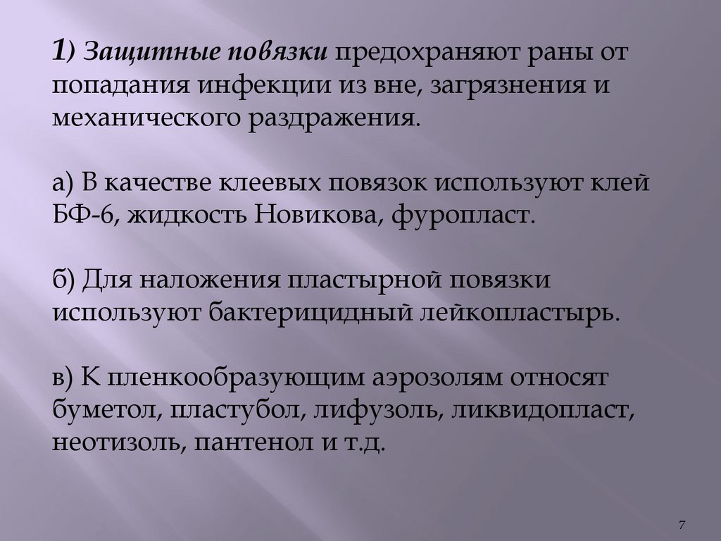 повязки) и с лечебной целью.