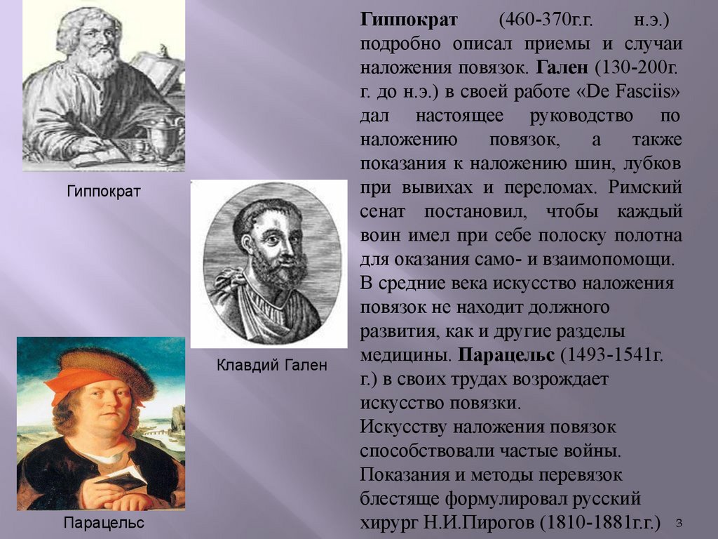 наложения повязок. Гален (130-200г.