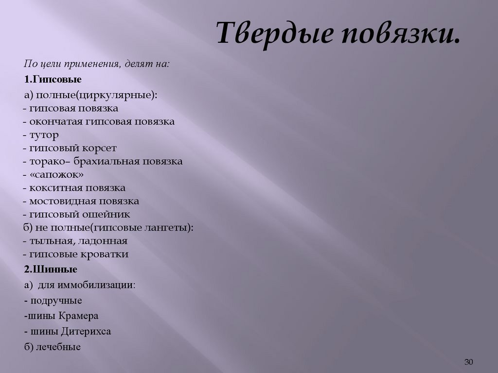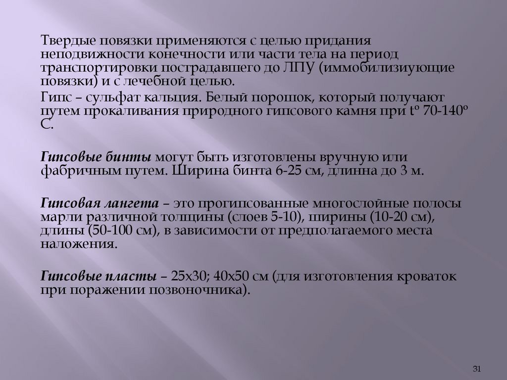 Твердые повязки применяются с целью приданиянеподвижности конечности или части тела на период
