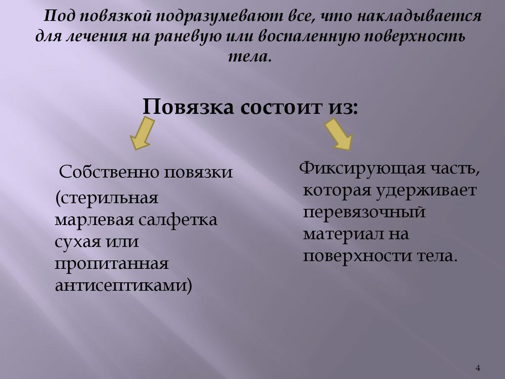 Под повязкой подразумевают все, что накладываетсядля лечения на раневую или воспаленную поверхность